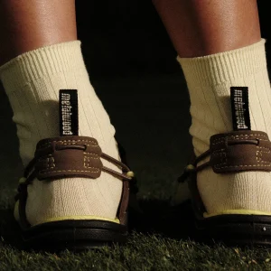 We paired up with LA-based golf streetwear brand Metalwood Studio to create the ultimate pre- and post-golf shoe. Featuring an adjustable heel strap to convert from shoe to slide.