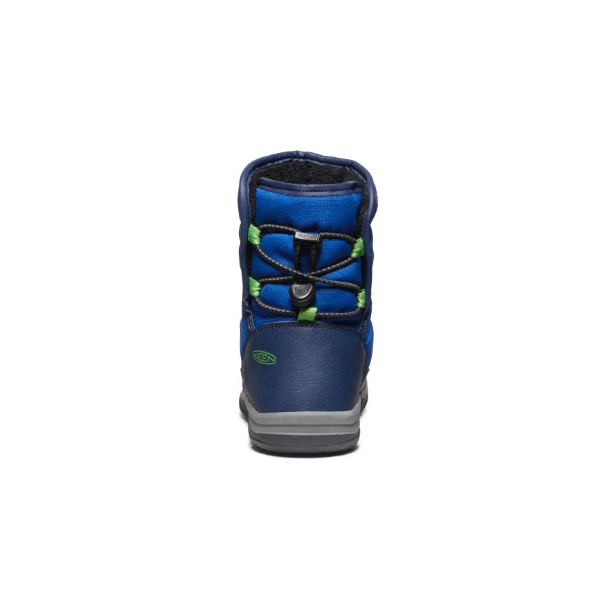 The kids’ snow boot that feels like a sleeping bag. Soft, waterproof, toasty, and so easy to get on & off with a bungee-cinch opening in back.