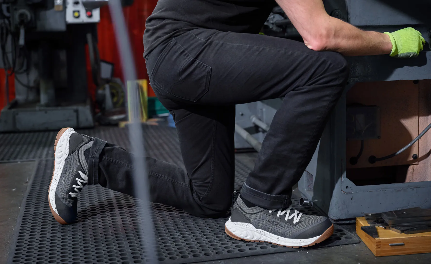 Made for constant movement and long hours on your feet, this slip-on work sneaker provides athletic performance, energy-returning comfort, and easy on-off.Best For: Warehouse | Carpentry | Light Manufacturing | Assembly Line