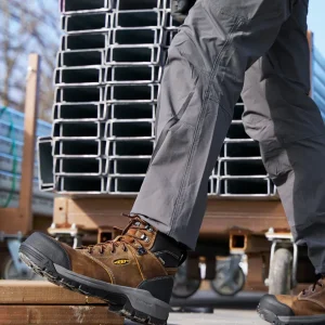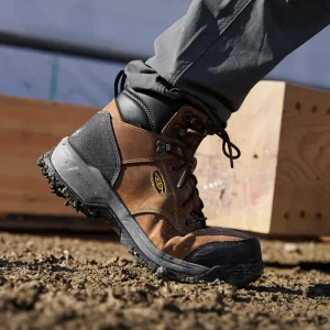 Protects like a work boot and feels like a sneaker. This versatile, waterproof men’s 6″ style features a tough leather upper and energy-returning cushioning.Best For: Warehouse | Framing | Carpentry | Construction | Electrician | Landscaping
