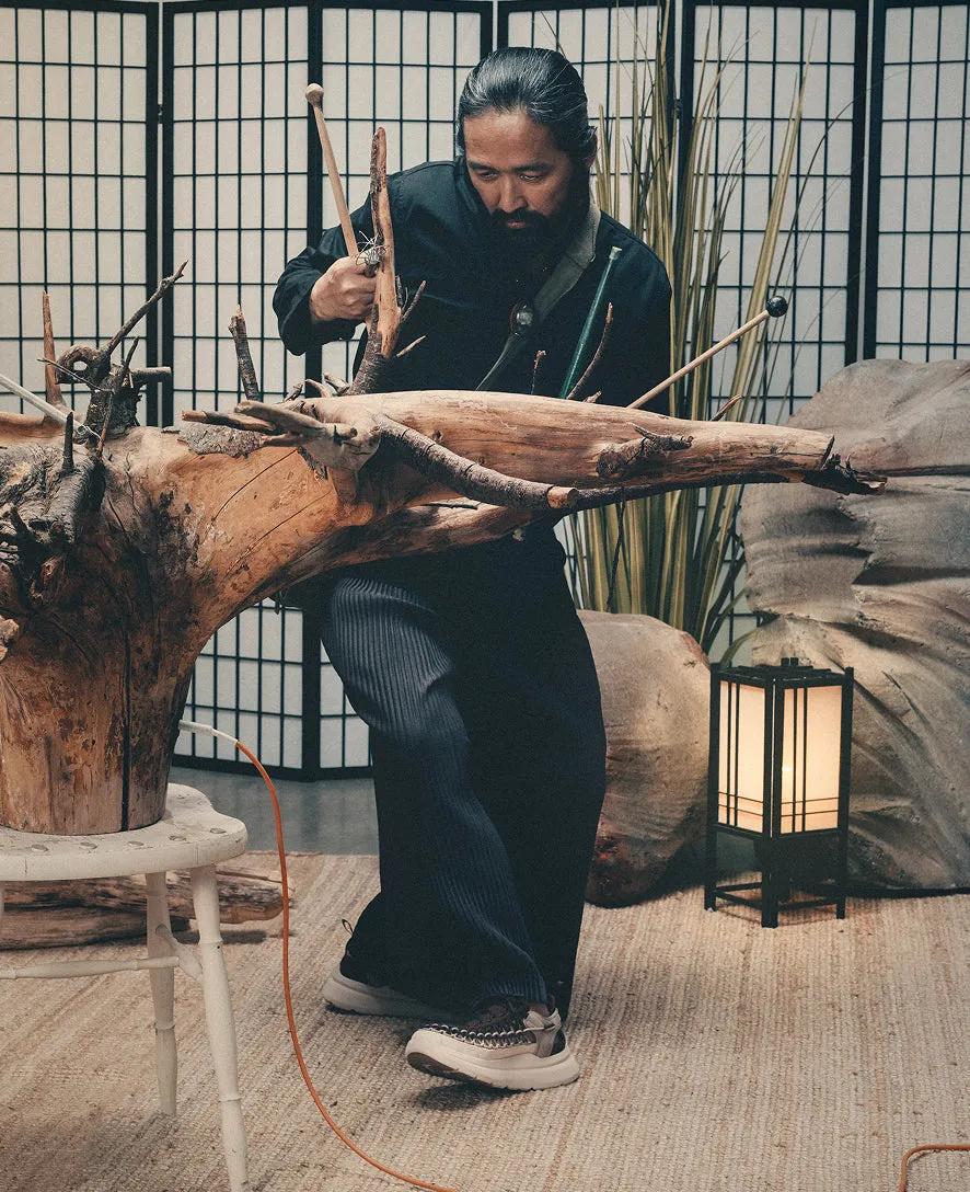 Our open-air walking sneaker gets a special muted multi-tone upper with bright details, thanks to German sneaker house AFEW.
