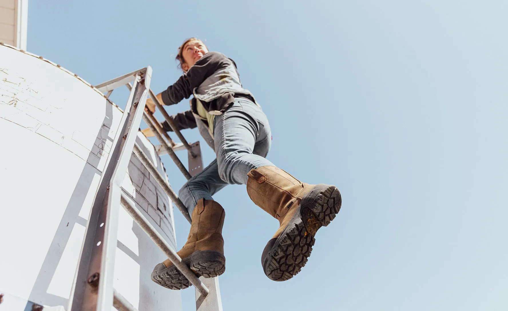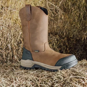 Protects like a work boot, fits like a sneaker. This waterproof women’s pull-on style features a tough leather upper and energy-returning cushioning.Best For: Carpentry | Construction | Fabricator | Framing | Landscaping | Natural Resources
